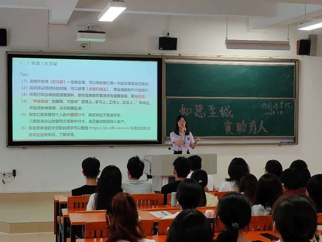 据悉,当天还召开了2023年秋季学期助学工作总结暨助学委员培训会,助学中心负责人邱佰娇进行业务能力培训,辅导员王玉寒、成本长进行总结,为以后工作指明方向。活动期间,设立资助政策咨询处进行政策宣传与答疑解惑。