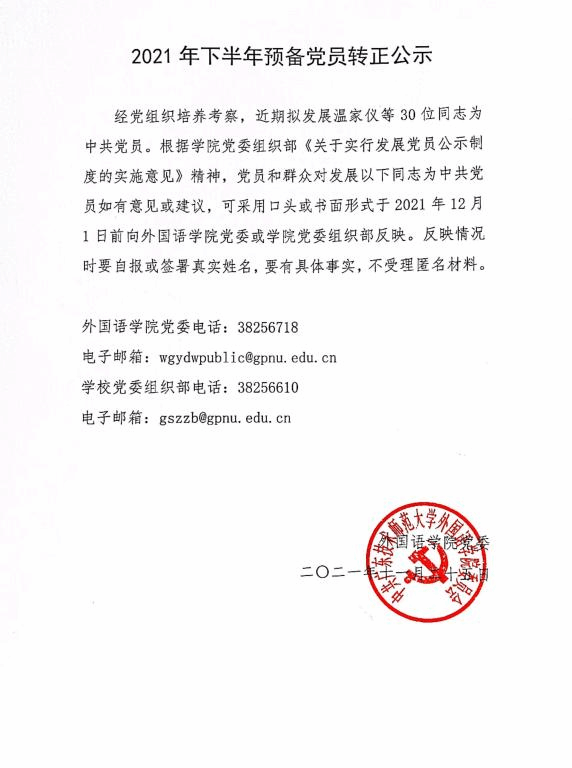 2021年下半年预备党员转正公示