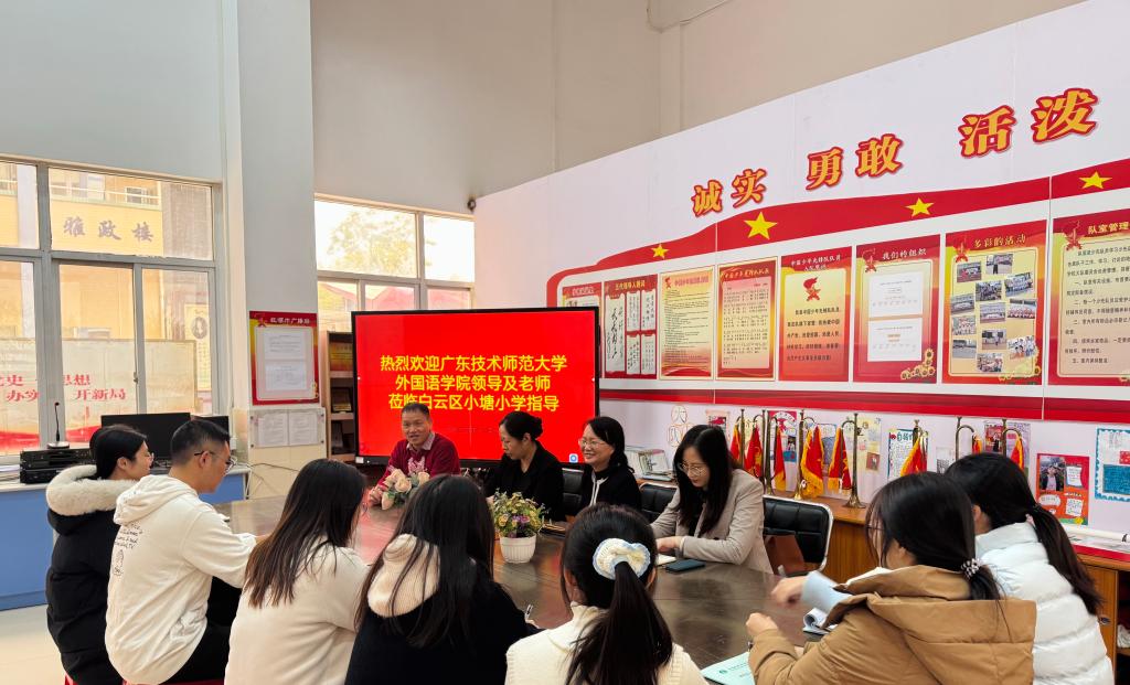 12月26日,伟德国际victor1946经理徐玲、党委副书记王琴琴、副经理王永建、辅导员一行赴广州市白云区小塘小学看望2022级英语(师范)专业实习员工,并与公司负责人、指导教师和全体实习生座谈交流。