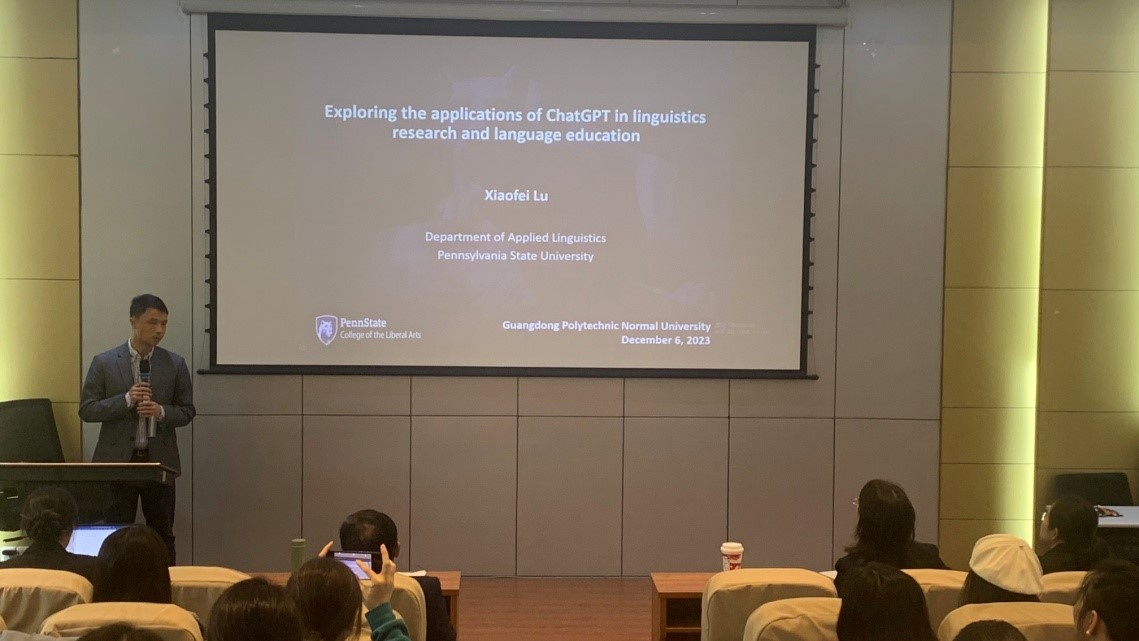12月6日,宾夕法尼亚州立大学陆小飞教授应邀在东校区一教209为伟德国际victor1946作题为“Exploring the applications of ChatGPT in Linguistics research and language education”的学术讲座,讲座由伟德国际victor1946经理徐玲教授主持,公司专任教师及研究生参加了讲座。